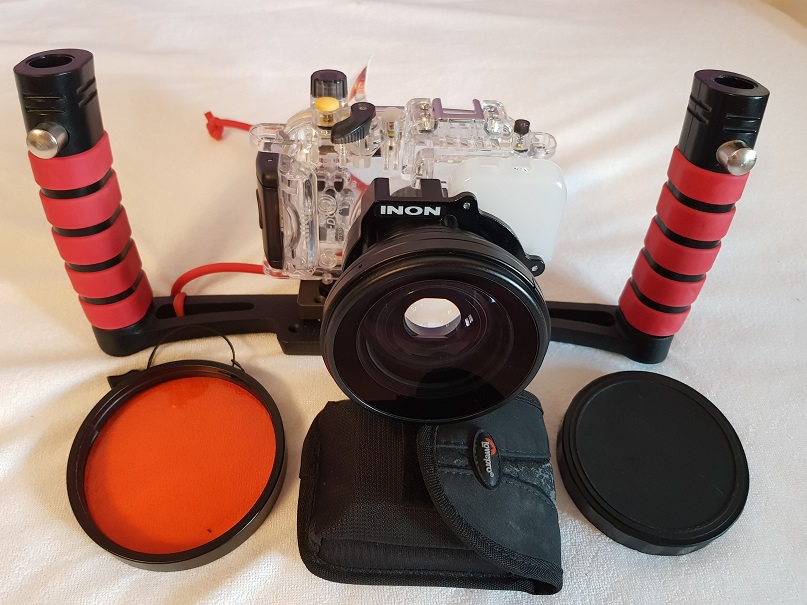 Данный комплект в идеальном состоянии, камера позволяет устанавливать ручной баланс белого, что очень важно под водой.
