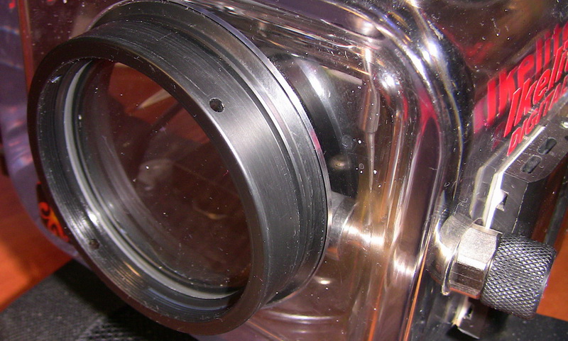 Я пока никак не могу догнать, какой плюс в установке еще какого-то порта на тот-же бокс, если в паспорте к видеобоксу Ikelite написано, что родной его порт установлен промышленным способом и его демонтаж невозможен. С тем же успехом я вкручиваю свой широкоугольник на внешнюю резьбу бокса. Напомню, что на поверхности, приблизив к лицу (глазу) на расстоянии прим. 3-4 см. данный широкоугольник изображение идеальное, т.е. вся проблема или в просчете конструкторов бокса или параметрах камеры, которые не позволяют ей правильно сфокусироваться, находясь на неправильном удалении. Точно также картинка вполне удовлетворительная при прислонении широкоугольника прямо к объективу камеры.